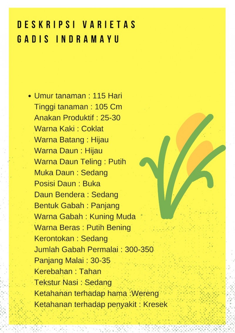 Kabupaten Indramayu merupakan daerah penyumbang nomor 1 produksi padi di Jawa Barat. Badan Pusat Statistik (BPS) Jawa Barat mencatat produksi padi di Indramayu tahun ini mencapai 1,3 juta ton berada di atas Karawang (1,1 juta ton) dan Subang (991 ribu ton).