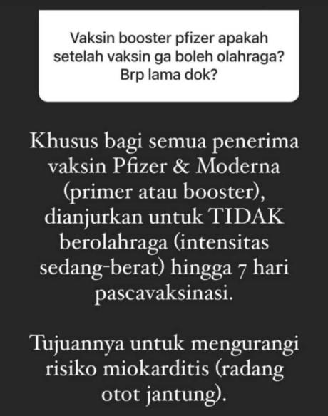 Bolehkah Berolahraga Paska Vaksin Moderna/Pfizer?
