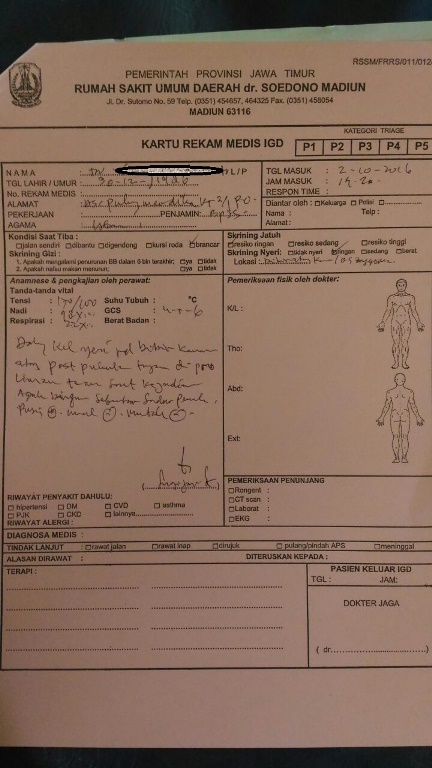 Hasil visum korban di RSUD dr Soedono Madiun, pada 2 Oktober 2016, tak lama setelah kasus kekerasan terjadi. Foto: Independen I Istimewa