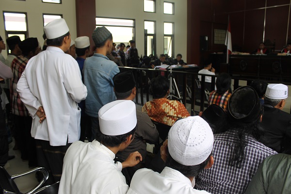 Independen, Jakarta -- Tanya jawab di atas muncul saat proses sidang pemeriksaan terdakwa Alnoldy Bahari alias Ki Ngawur Permana di Pengadilan Negeri Pandeglang, Selasa (27/3) lalu. Saat Alnoldy menjawab pertanyaan Jaksa Penuntut Umum itu, hampir semua massa Front Pembela Islam (FPI) di dalam ruangan sidang langsung berdiri.