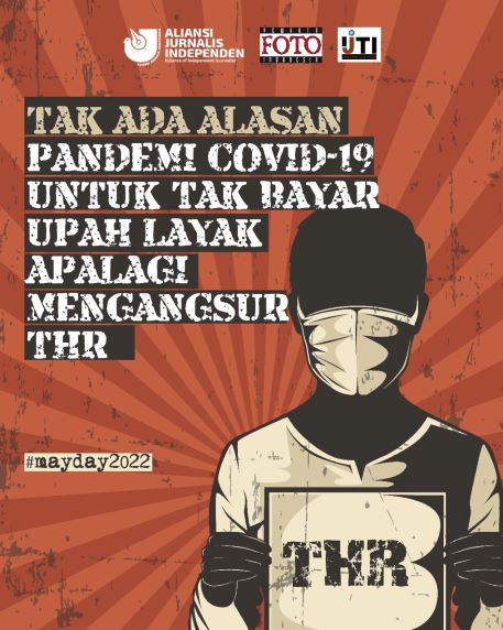 Maka pada peringatan May Day 2022 kali ini, Aliansi Jurnalis Independen (AJI) Indonesia, Ikatan Jurnalis Televisi Indonesia (IJTI), Pewarta Foto Indonesia (PFI) sebagai organisasi profesi jurnalis, serta LBH Pers meminta perusahaan tidak menjadikan pandemi Covid-19 sebagai alasan untuk menunda atau tidak membayar THR, tidak memberikan upah layak, dan melakukan PHK terhadap buruh media.