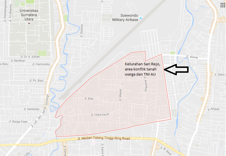Tiga puluh menit kemudian mereka sampai di pertigaan jalan di dekat SMA 2, Polonia Medan. Posisinya tak jauh dari Mess Perwira TNI AU. Ia melihat seorang perempuan menangis, meminta anak laki-lakinya yang masih berusia 12 tahun, yang disekap TNI AU karena terlibat aksi demo menolak pembangunan rusunawa TNI AU pagi harinya dilepaskan.