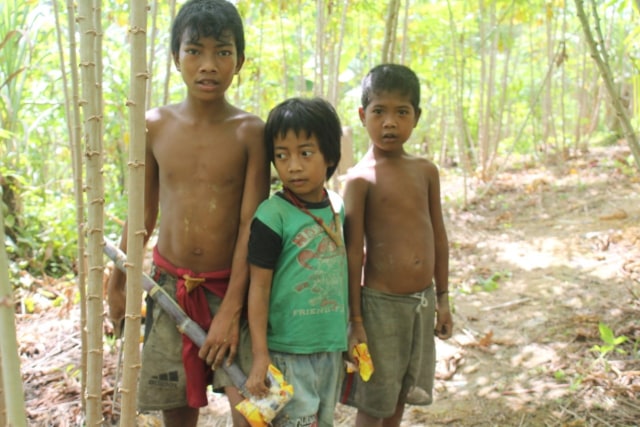 Orang Rimba children at their sweet potato garden. During the Besasandingon tradition, they only eat boiled sweet potatoes. (Photo: KKI Warsi)